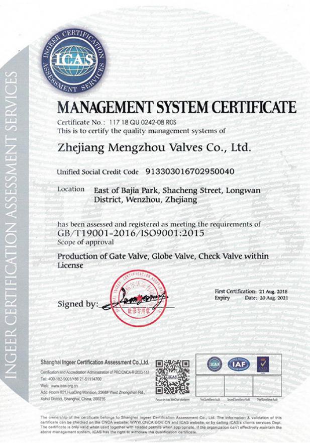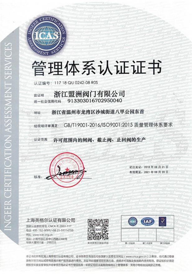 管理體系認(rèn)證證書