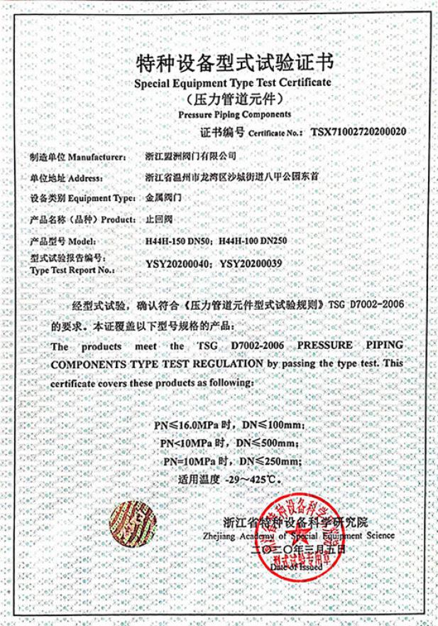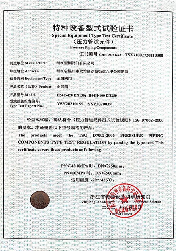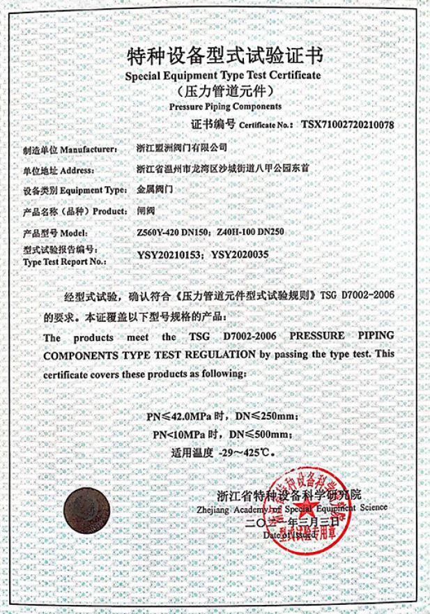 特種設(shè)備型式試驗(yàn)證書